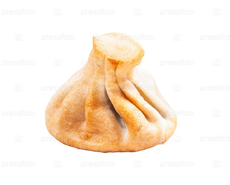 Одиночные жареные хинкали (пельмени), изолированные на белом фоне