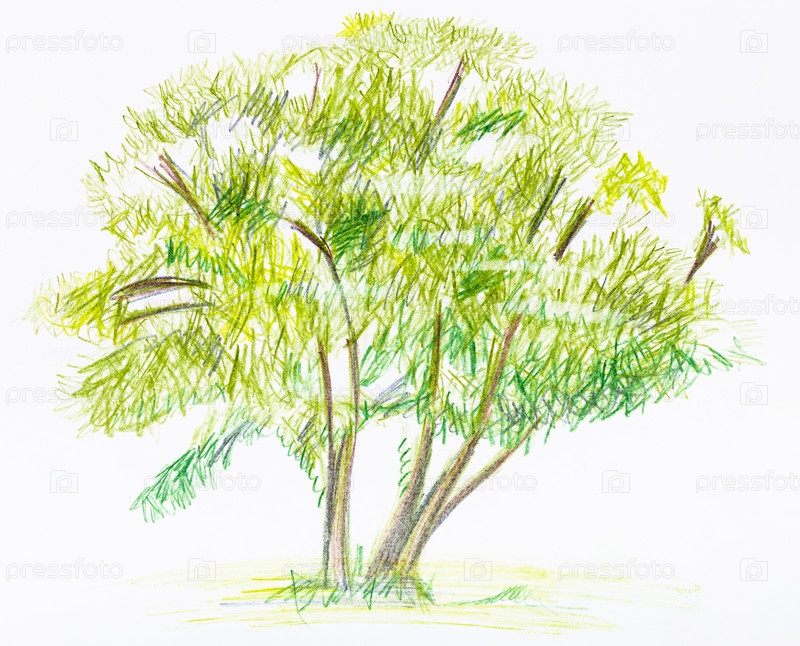 Эскиз зеленого куста летом