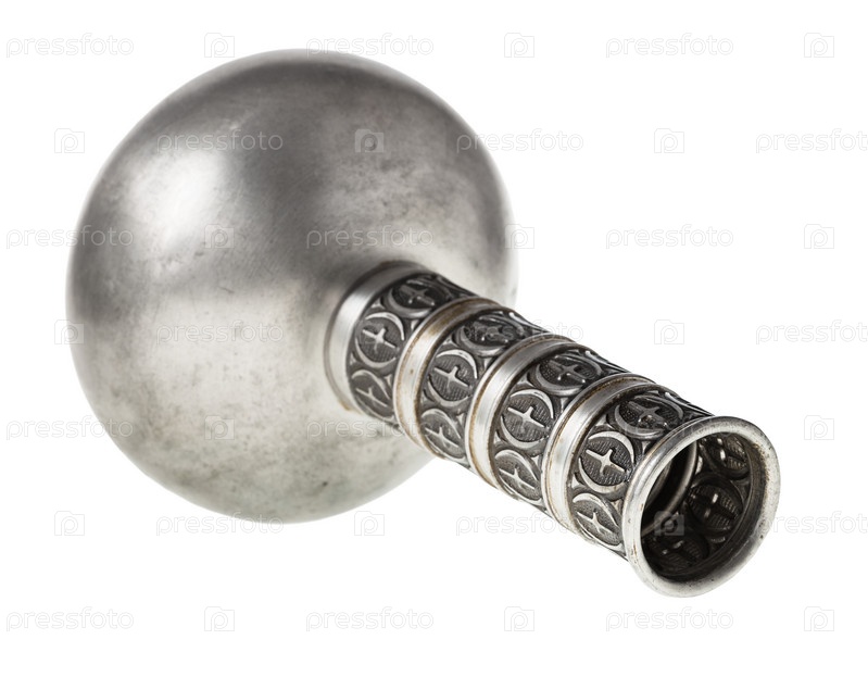 Опрокинутый винтажный жестяной кувшин в стиле викингов изолирован