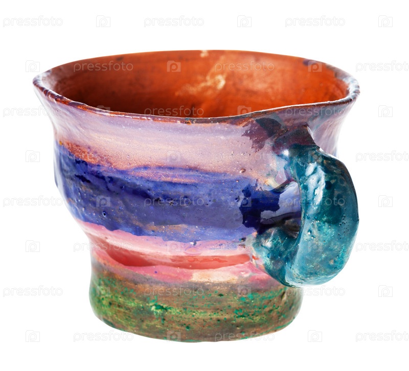Чашка ручной работы и ручная роспись из глины изолированы