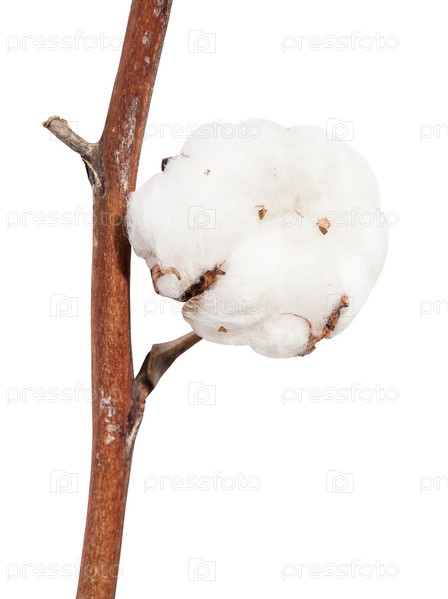 Сушеная спелая коробочка хлопкового растения на изолированной ветке