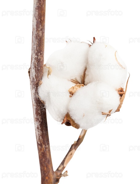 Сушеная спелая коробочка хлопчатника на ветке изолирована