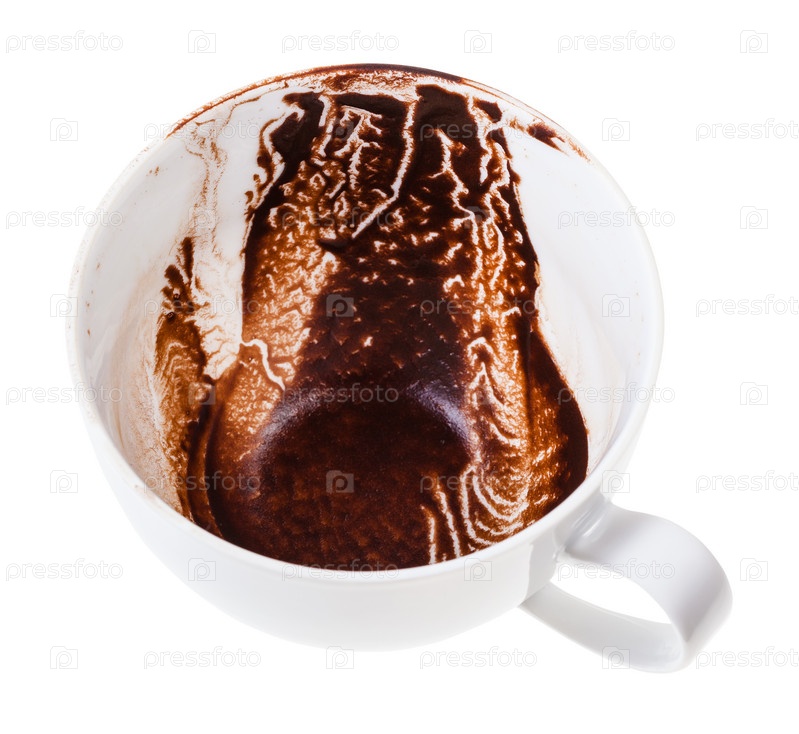 Чашка из белого фарфора с высохшими осадками рожкового дерева