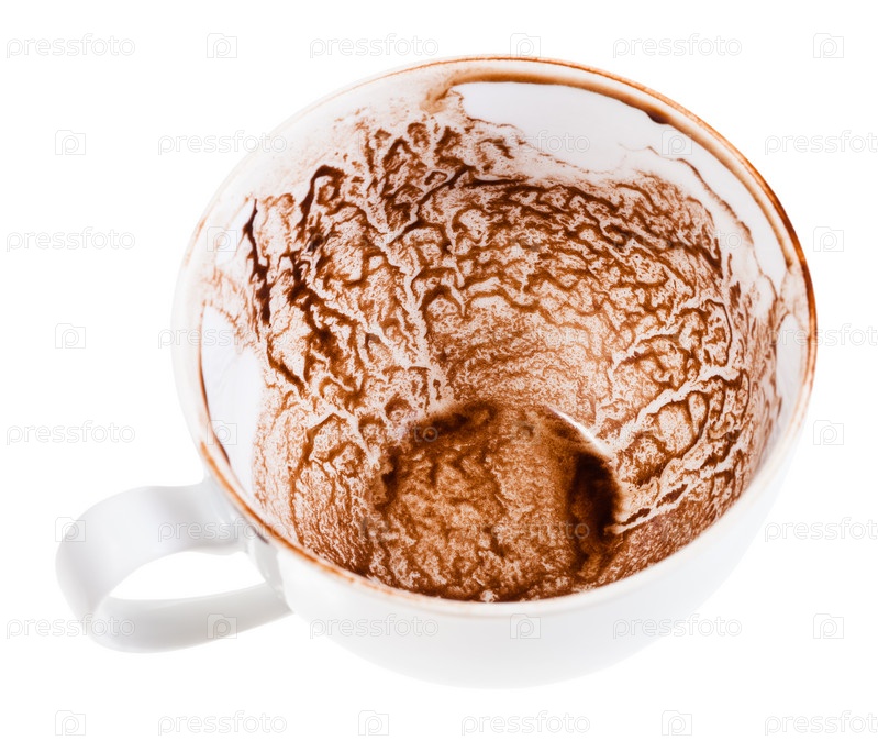 Белая чашка с узором из высушенных отложений рожкового дерева