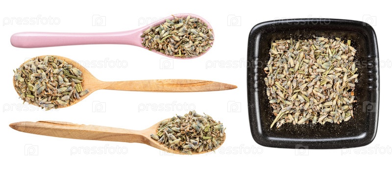 Набор различных сушеных цветов лаванды, изолированные