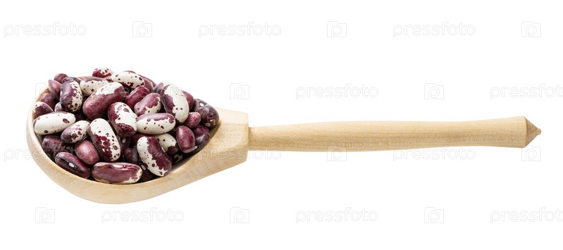 Красная пятнистая фасоль в деревянной ложке изолирована