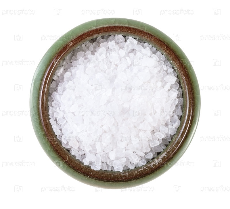 Керамическая солонка, вид сверху, с грубой морской солью