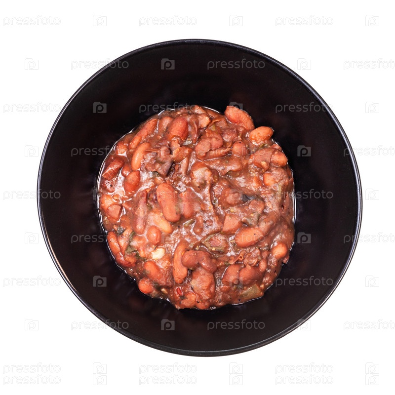 Вид сверху на лобио в черной миске изолирован