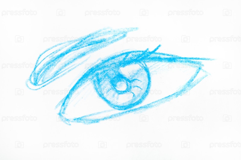 Эскиз человеческого глаза, нарисованный синим карандашом