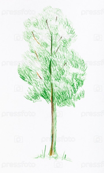 Эскиз одного зеленого дерева летом