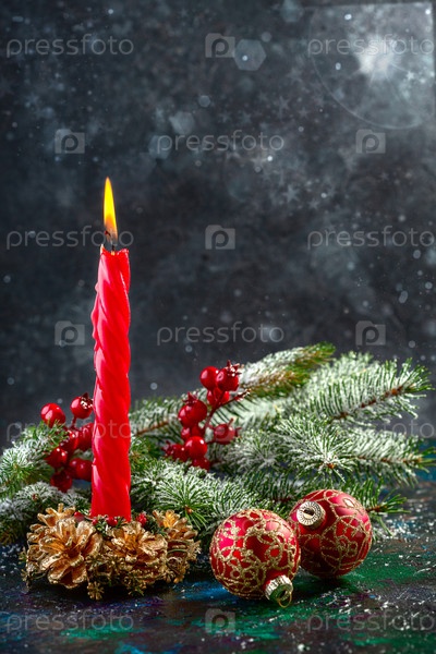 Рождественская свеча с еловыми ветками