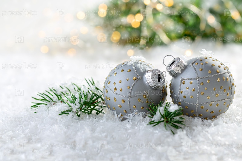 Композиция с двумя серебряными елочными шарами