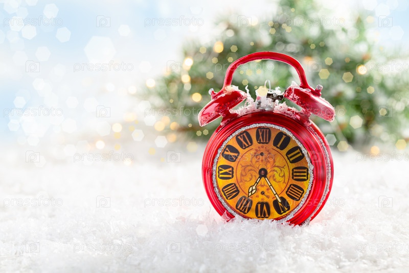 Рождественская открытка с красным будильником
