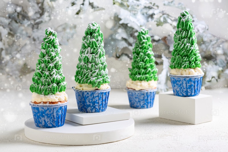 Рождественские кексы с елочным декором