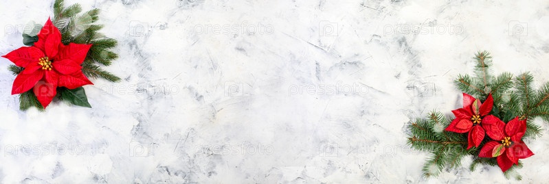 Рождественская композиция с красными пуансетиями и еловыми ветками
