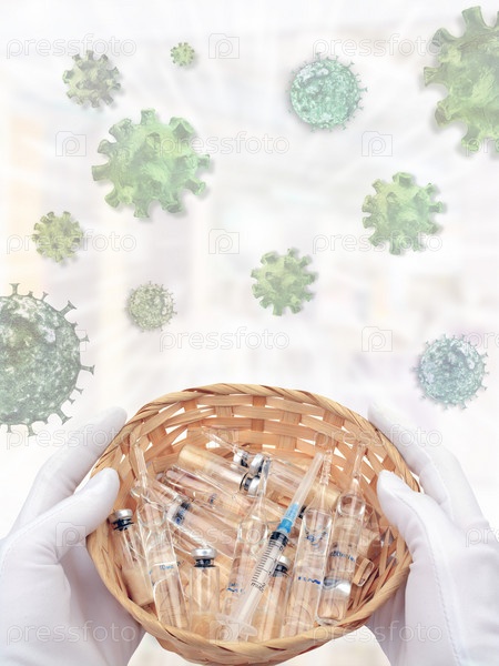 Лекарства для инъекций в корзине в руках человека