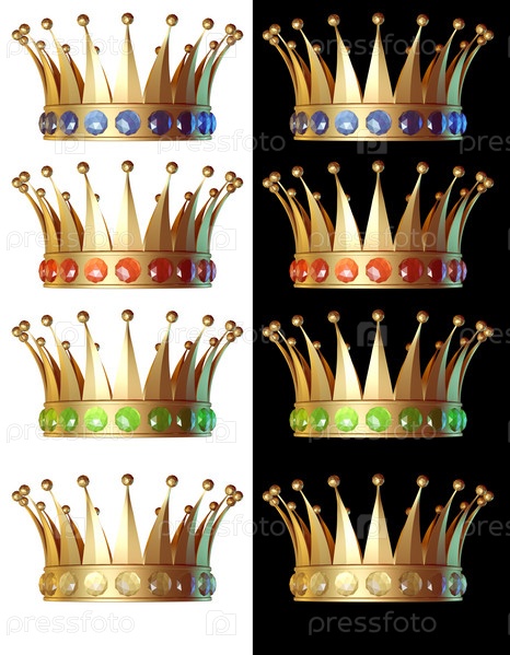 Золотая корона с различными драгоценными камнями на изолированном фоне