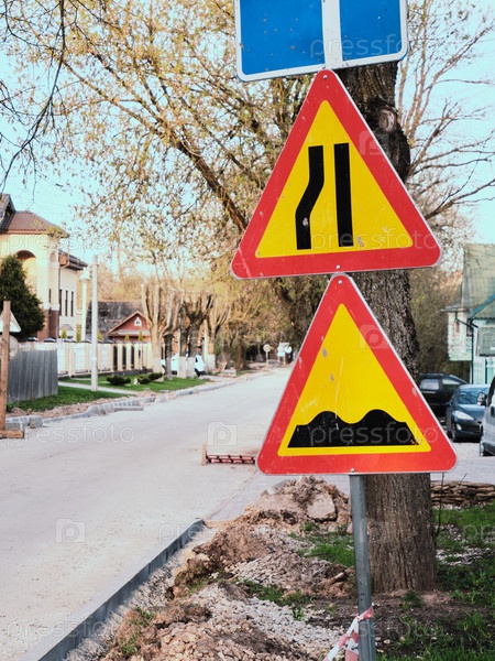 Дорожные знаки. Дорожные работы. Замена дорожного покрытия