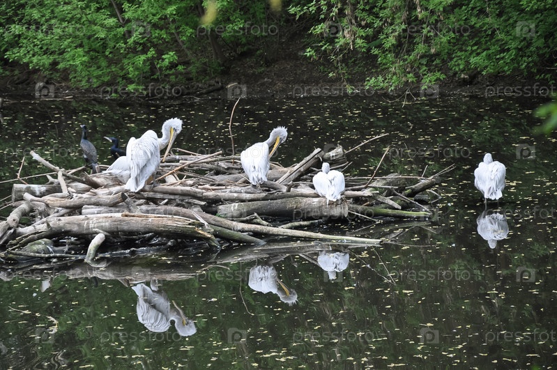 Стая пеликанов. Пеликаны на воде. Белые пеликаны. Семья пеликанов. Белые птицы. Птицы на озере. Птицы летом. Летнее время. Зоопарк животных. Животные парка