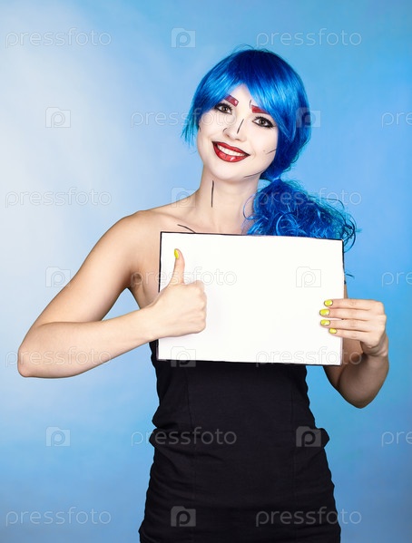 Портрет молодой женщины в стиле комического поп-арта. Женщина с бумагой в руках