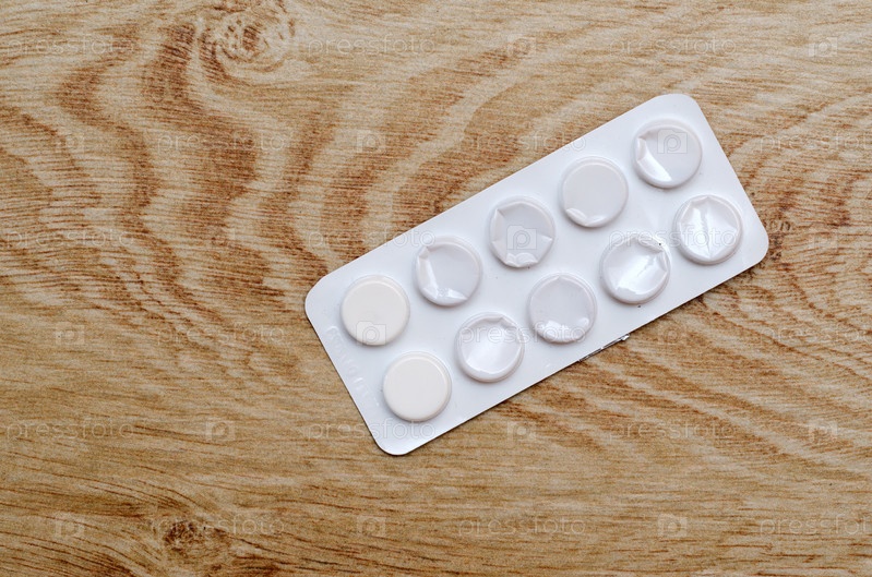 Белая упаковка с таблетками на деревянном фоне