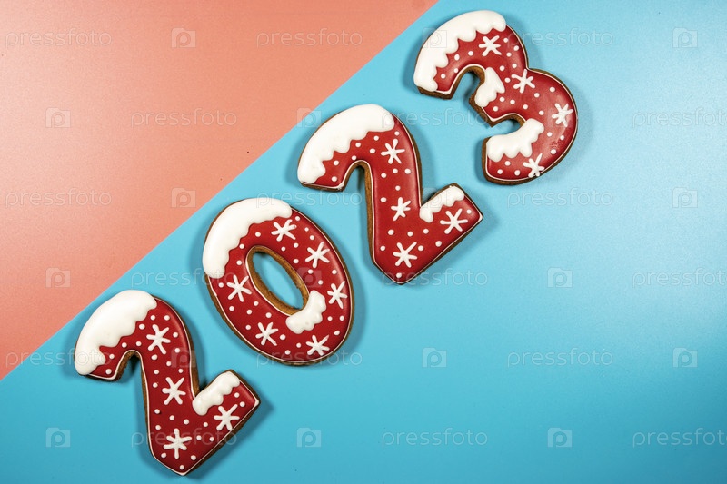Праздничный фон красного и синего цветов с цифрами 2023. Рождество и Новый год
