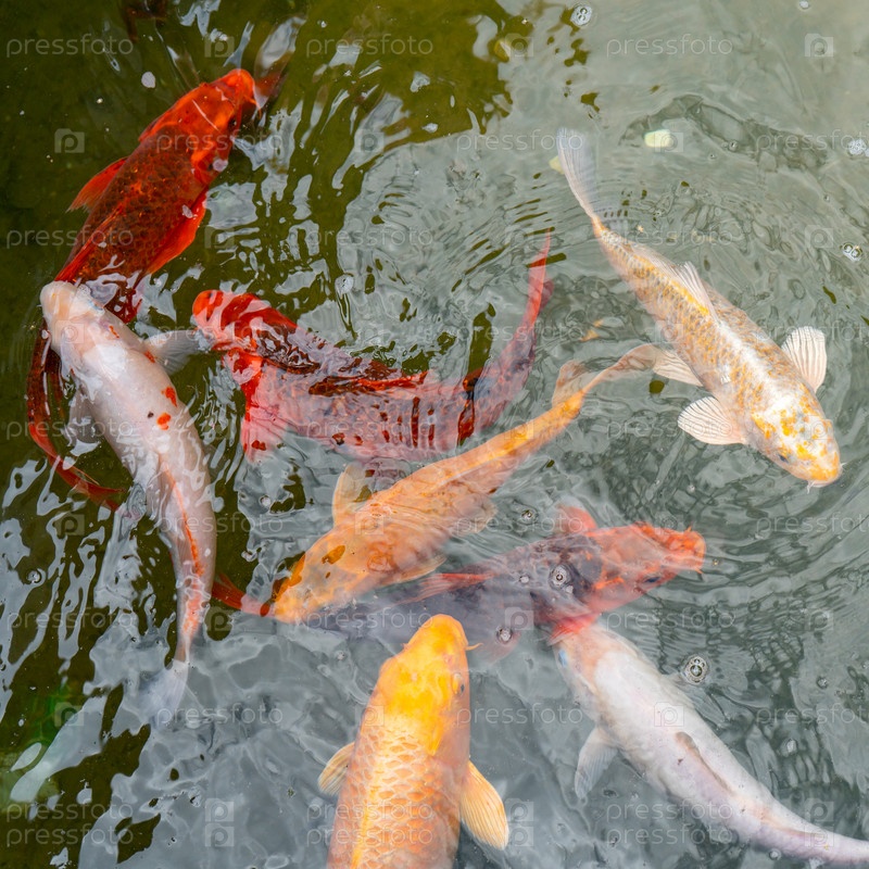 Золотая и красная императорская рыба в воде