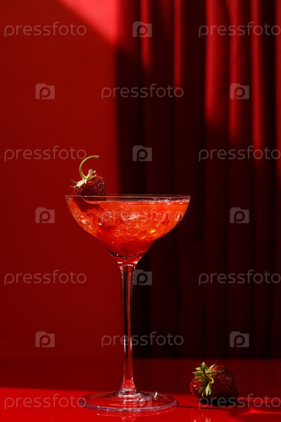 Красный напиток на красном столе на фоне красных штор