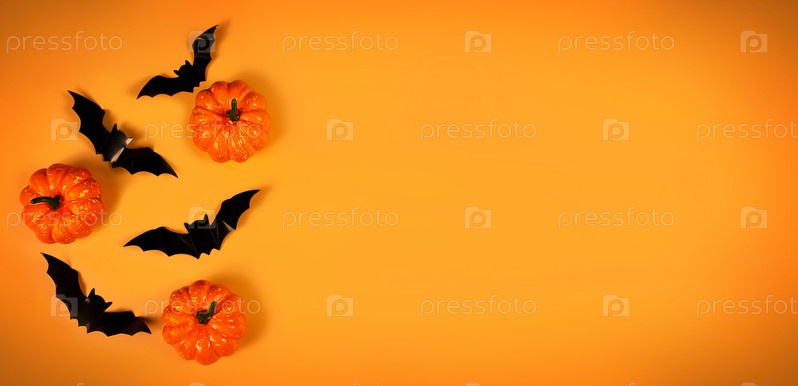 Широкий баннер, счастливый хэллоуин на оранжевом фоне. Символ специального предложения. Концепция праздника. Знак цены предложения скидки