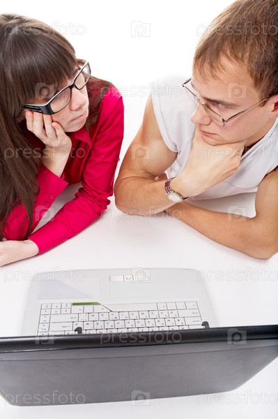Два молодых человека в офисе с ноутбуком