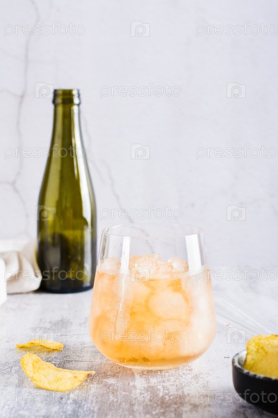 Пивная жижа в стакане на столе. Замороженный летний напиток. Вертикальный вид