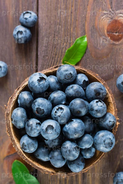 Чаша со свежей черникой на деревянном столе. Антиоксидантная органическая здоровая пища. Сверху и по вертикали