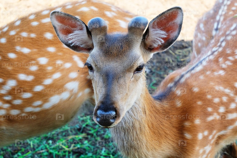 Пятнистый олень крупным планом в природе летом. Россия