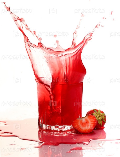 Всплеск клубничного сока на белом фоне