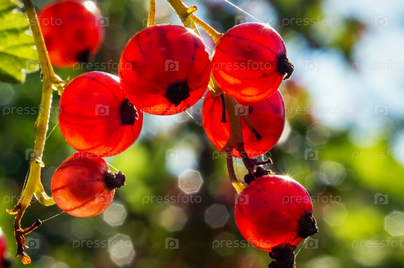 Красная смородина в лучах утреннего солнца