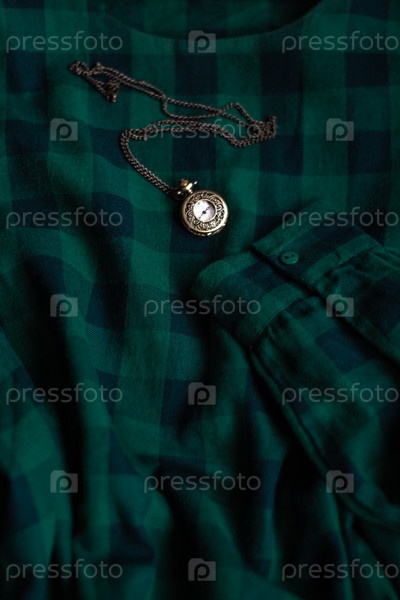Старинные карманные часы на зеленом фоне
