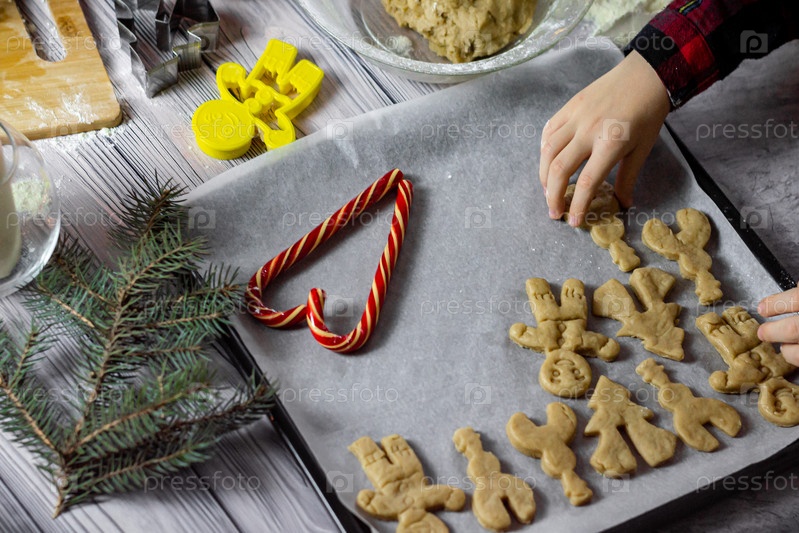 Рождественские традиции приготовления пряников, праздничный десерт на белом деревянном фоне