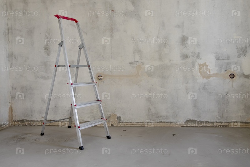 Строительная стремянка стоит в пустой комнате