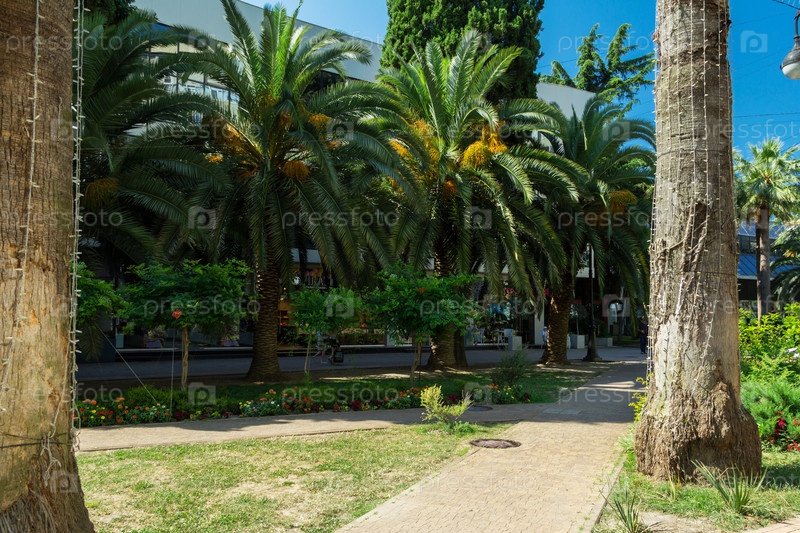 Пальмы на аллее в центре Сочи