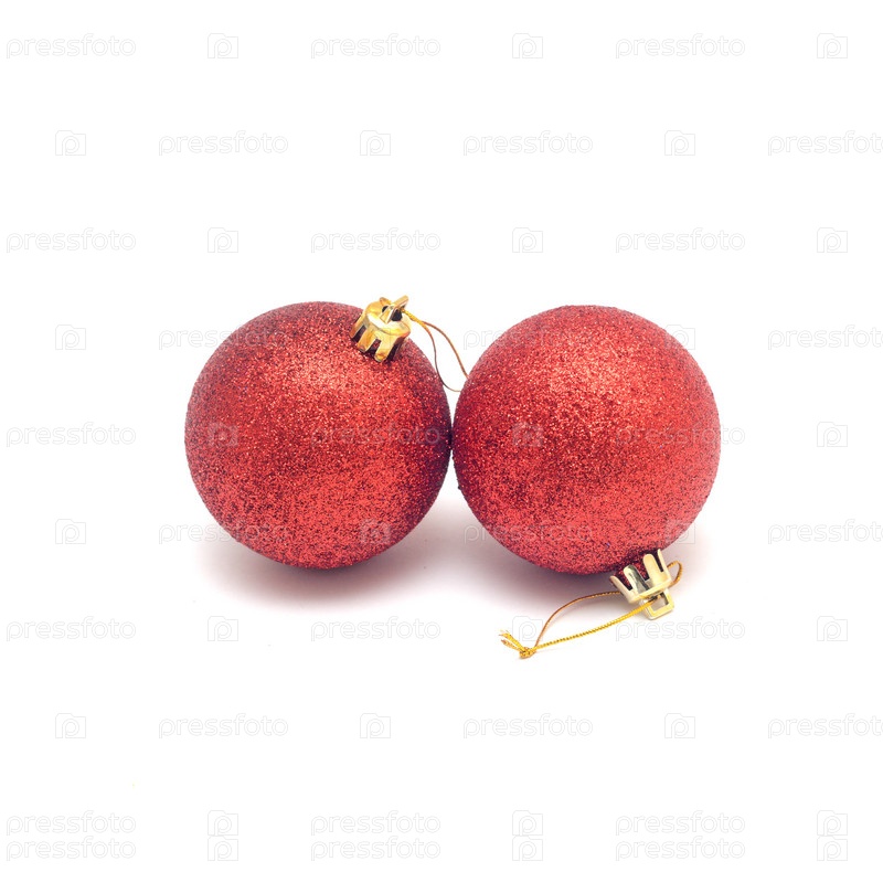 Два красных новогодних шара на белом фоне