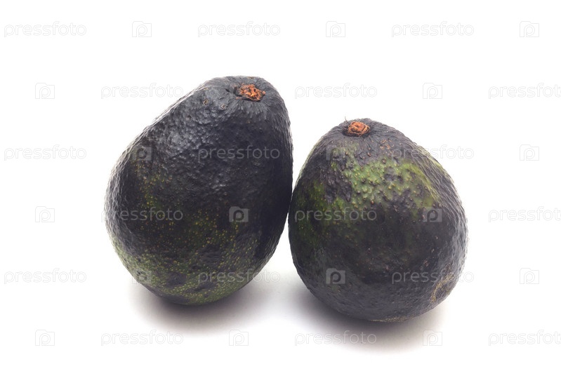Два целых гнилых авокадо на белом фоне