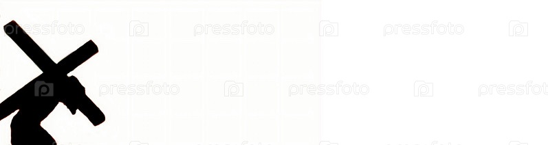 Силуэт Иисуса Христа, несущего крест на белом фоне