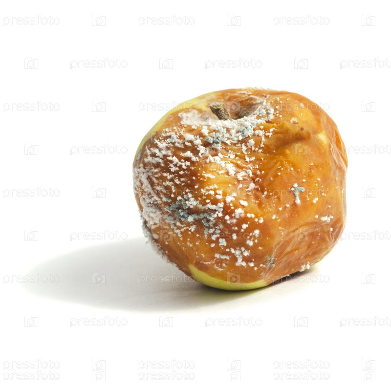 Заплесневелое гнилое яблоко на белом фоне