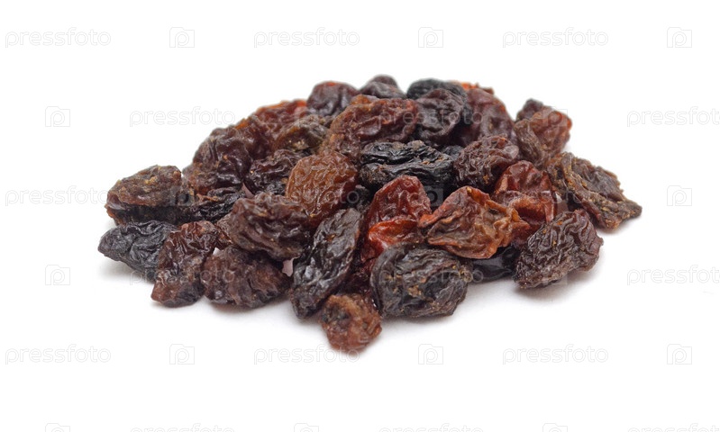 Куча темного изюма на белом фоне