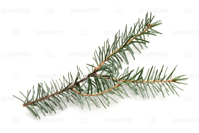Одна ветка елки на белом фоне