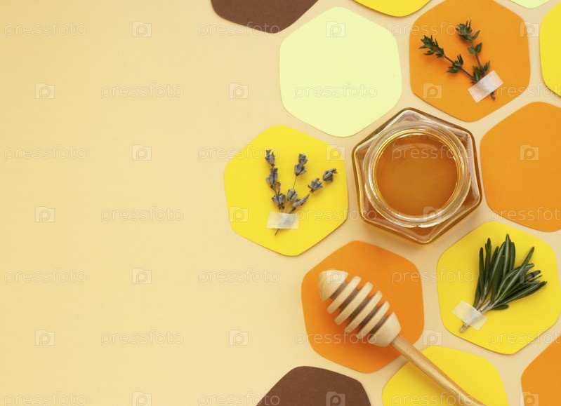 Мед и медоносные травы - вырезанный из бумаги горизонтальный коллаж