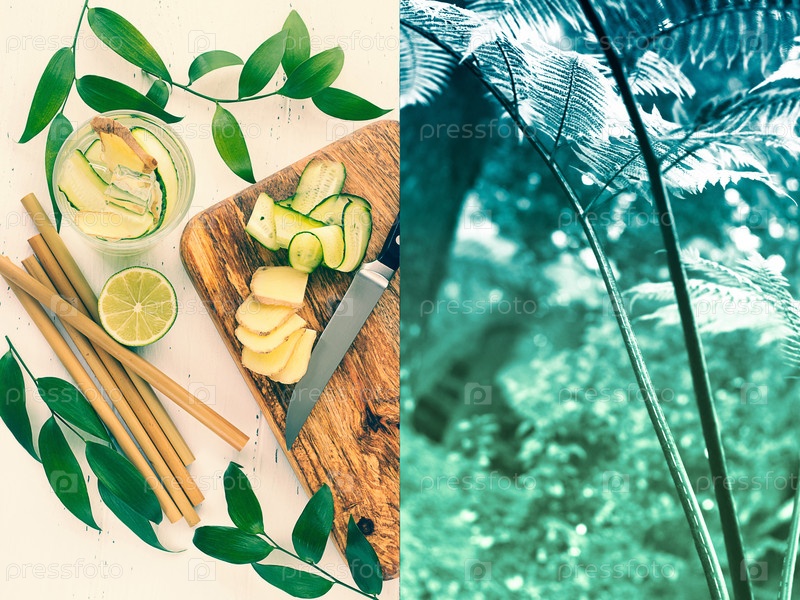 Коллаж:готовим имбирную воду и тропический лес
