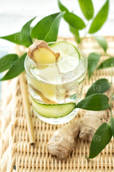 Стакан имбирной воды крупным планом