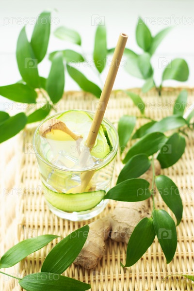 Стакан имбирной воды с бамбуковой трубочкой для коктейля