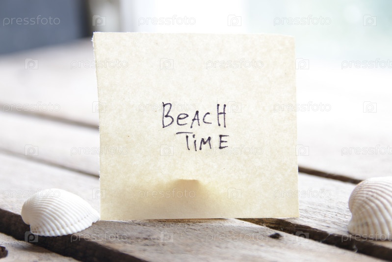 Концепция пляжного времени. Бумажная карточка с надписью. Идея летних каникул